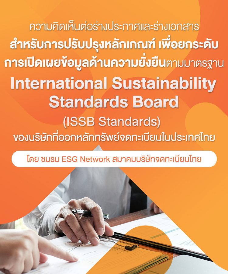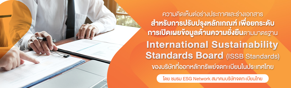 สมาคมบริษัทจดทะเบียนไทยร่วมกับชมรม ESG Network ได้จัดประชุมเพื่อวิเคราะห์สถานการณ์และความพร้อมในการดำเนินการในประเด็นเกี่ยวกับเปิดเผยข้อมูลด้านความยั่งยืนในประเด็นเกี่ยวกับการเปิดเผยข้อมูลตามมาตรฐาน International Sustainability Standards Board (ISSB Standards) ( IFRS S1 / IFRS S2) ในแบบ 56-1 One Report เมื่อวันที่ 13 สิงหาคม 2568 ผ่านระบบออนไลน์ MS Teams โดยมีรายละเอียดหนังสือตามเอกสารแนบ