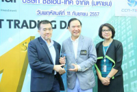 คุณเพ็ญศรี สุธีรศานต์ ผู้อำนวยการสมาคมบริษัทจดทะเบียนไทย ร่วมแสดงความยินดีและต้อนรับ บริษัท ซีซีเอ็น-เทค จำกัด (มหาชน) [CCN] -mai เนื่องในโอกาส 1st Trading day วันที่ 11 กันยายน 2557 ณ โถงนิทรรศการ ชั้น 1 อาคารตลาดหลักทรัพย์แห่งประเทศไทย