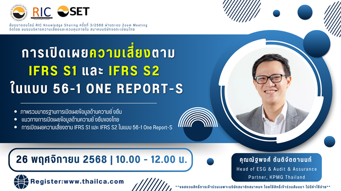 RIC Knowledge Sharing 3/2568 หัวข้อ การเปิดเผยข้อมูลความเสี่ยงตาม IFRS S1 และ IFRS S2 ในแบบ 56-1 One Report-S
