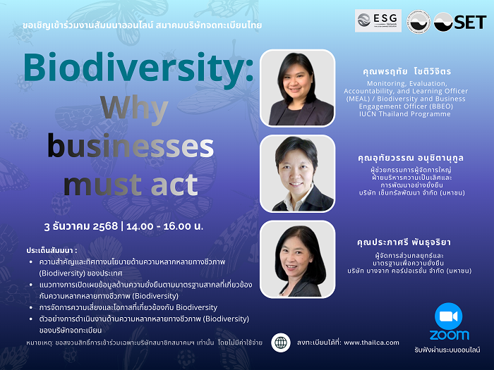 สัมมนาออนไลน์ หัวข้อ Biodiversity : Why businesses must act